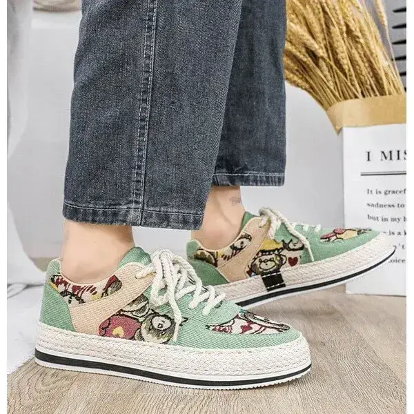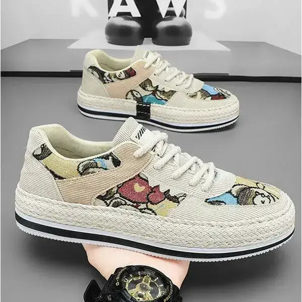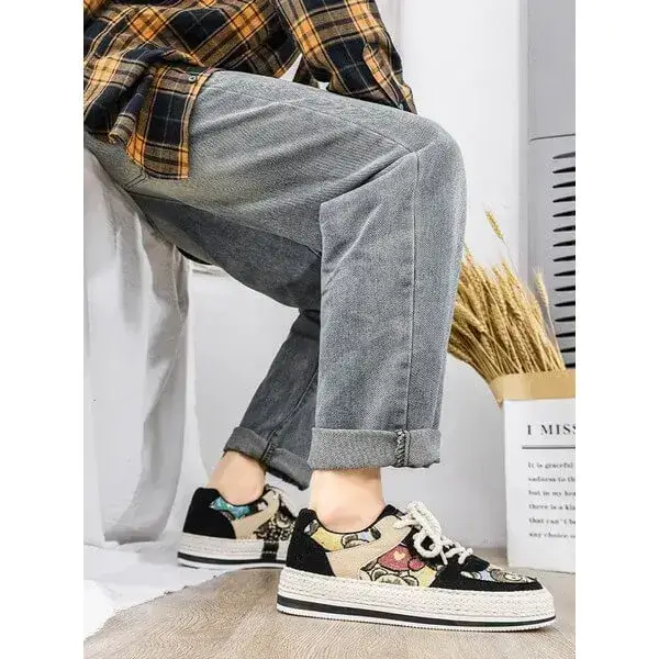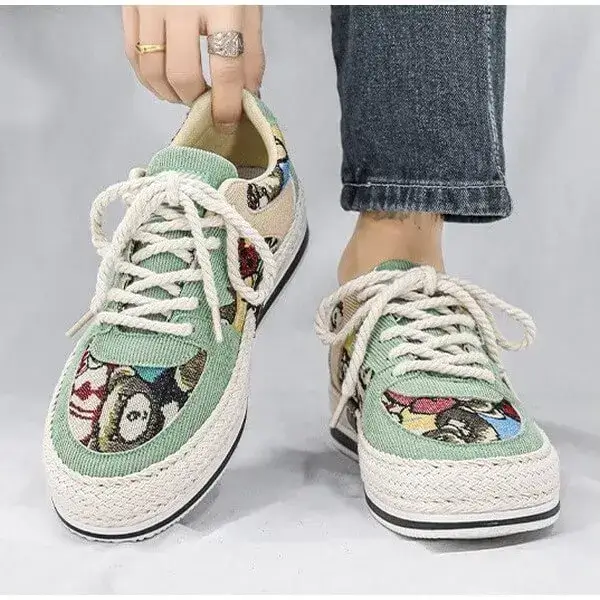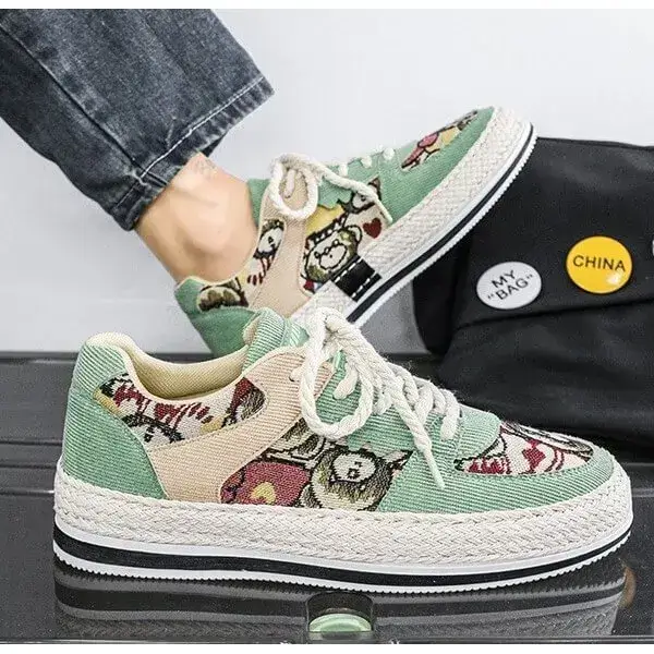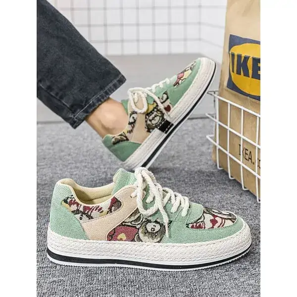 Mens Color-Matching Canvas Sneakers | UV-Resistant Low-Top Casual Shoes in Beige, Black, Green