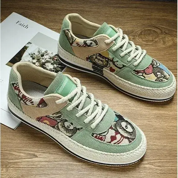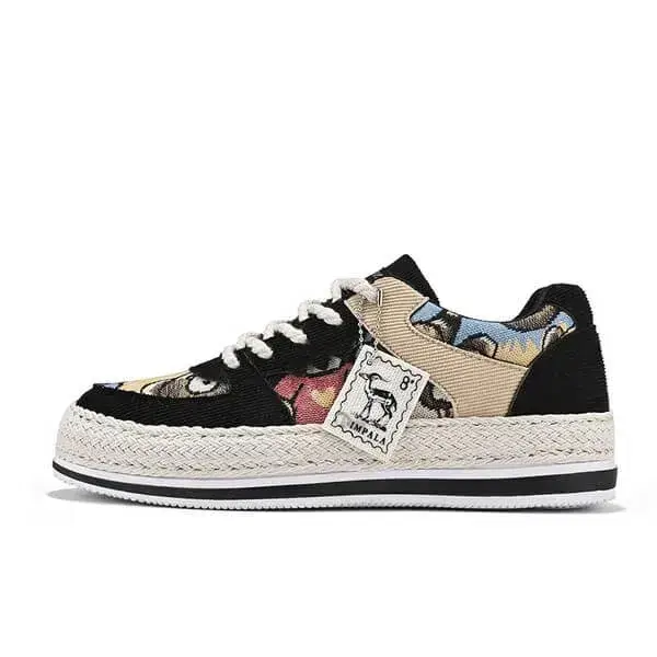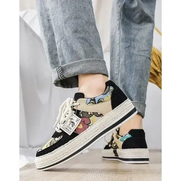 - Stylish Color-Matching Pattern with Braided Soles:Color-matching design in Beige, Black, and Green with braided soles and "IMPIALA" branding offers a trendy, cohesive look.