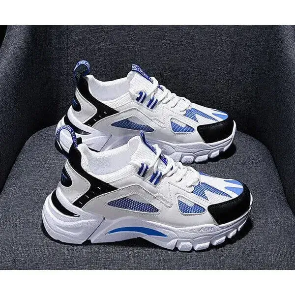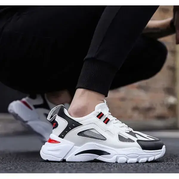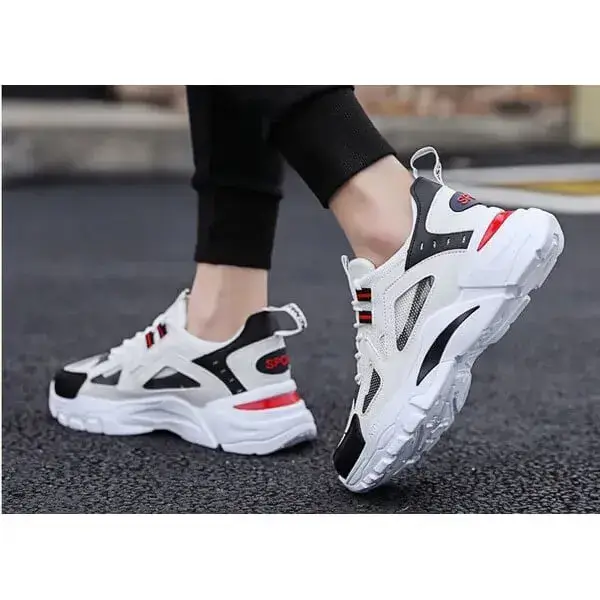 Elevate your casual style with our Mens Colorblock Mesh Sneakers. These breathable, lightweight platform sneakers feature a bold colorblock design in White Blue, White Red, and Black, blending fashion with functionality. Perfect for daily wear, gym sessions, or casual outings, they offer comfort and durability in a trendy package.