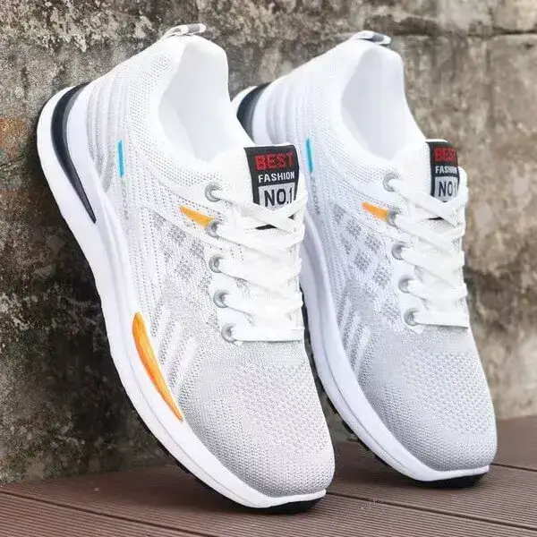 Run in style with our Mens Mesh Running Sneakers. These reflective hand-painted mid-top casual shoes in Black, Grey, and White feature a breathable fly weave upper and glowing patterns for visibility. Perfect for running or casual wear, they blend durability with a unique, sporty design accented by "BEST FASHION NO1" branding.