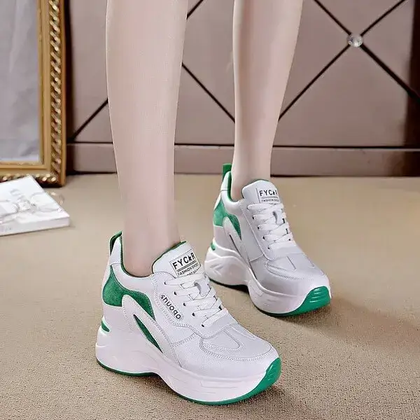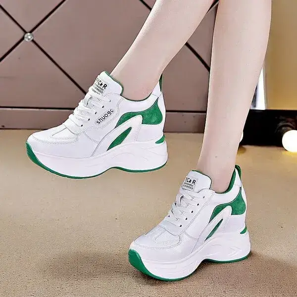 Womens Colorblock Sneakers | Temperature-Regulating Low-Top Platform Shoes in Black, Green
