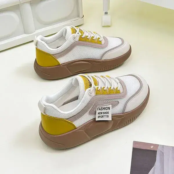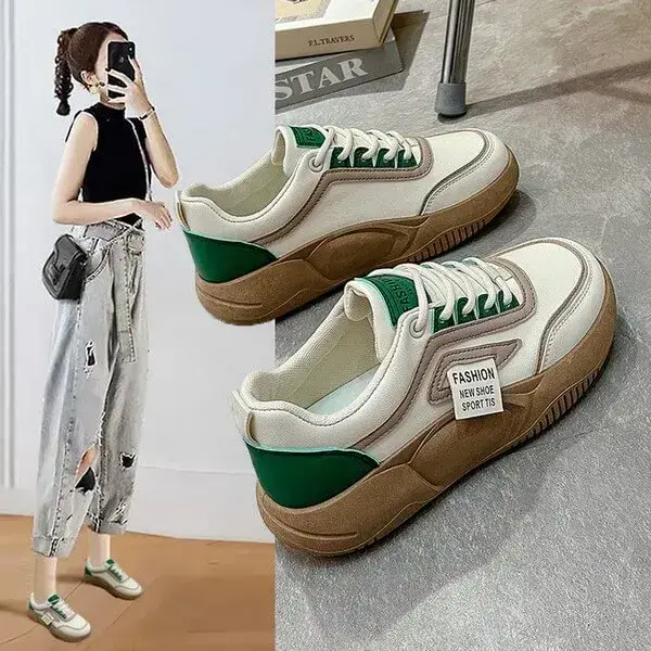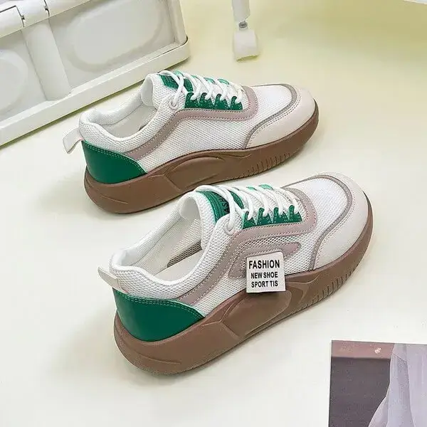 Stand out day or night with our Womens Contrast Color Sneakers. These light-reflective low-top platform shoes in Green and Yellow feature a PU upper, breathable imitation leather lining, and a durable rubber sole. With "FASHION NEW SPORT" branding, they’re perfect for evening wear or casual flair.