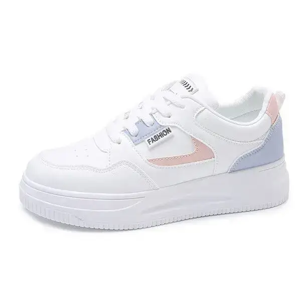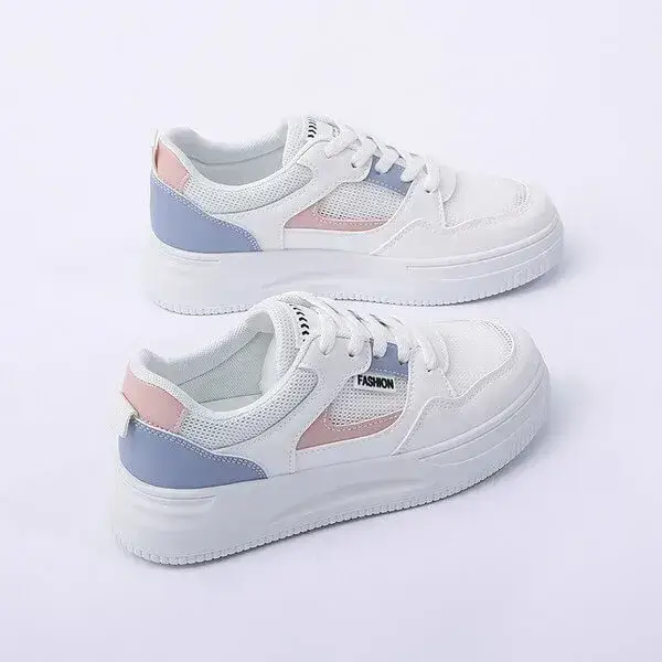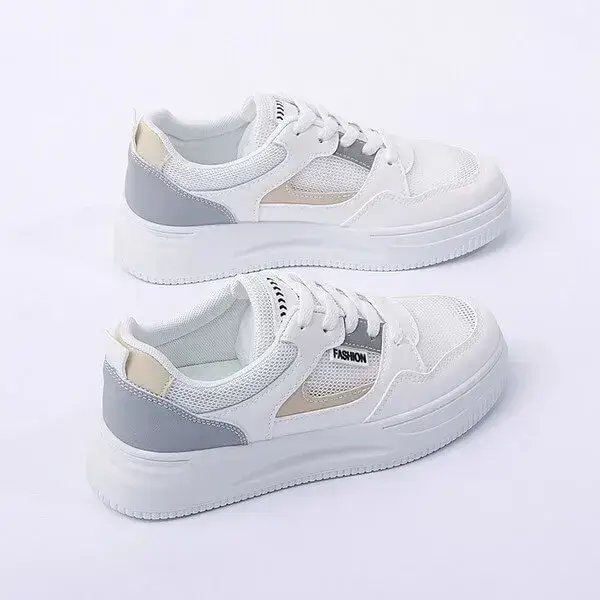 Womens Platform Sneakers | Round Toe Thin Strap Breathable Low-Top Shoes in Brandy, Grey, White Black, White Blue, White Grey